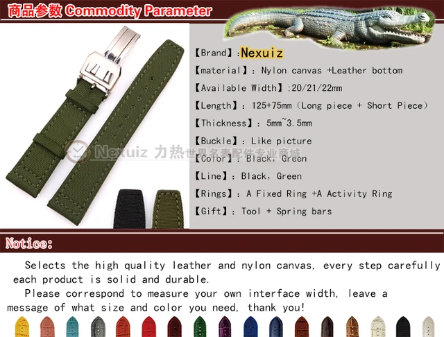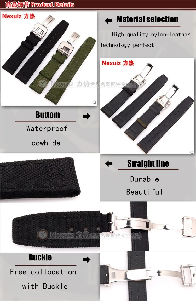 2016 뜨거운 판매 시계 줄, 20/21/22 미리메터 나일론 캔버스 + 가죽 시계 스트랩 스테인레스 스틸 접는 걸쇠 부서