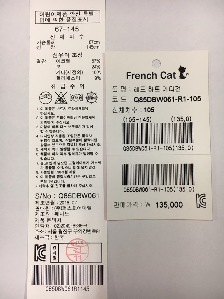 제조자 : 퍼스트어패럴