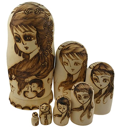 -. Feature : Beautiful traditional Russian girl,a man and a woman gazing at each other,flowers and heart-shaped pattern around to embellish. / All the making process is handmade.Every inch of the pattern is sculptured. / Contains 7 dolls with decreasing size placed one inside the other to appear as one. / Kids will love these nesting dolls and spend time playing with them or you can give it to your lover as a souvenir. / Russian nesting dolls is full of special meanings,it's a perfect gift to give anyone and special decoration.