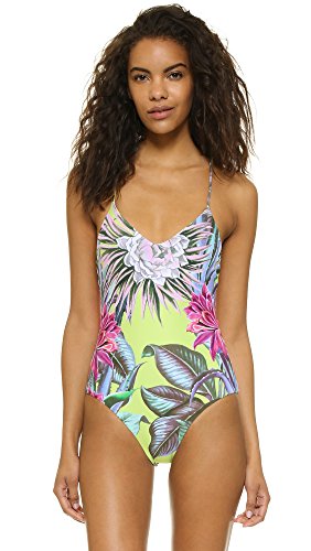 Mara Hoffman Women's Lace Up Back Maillot One Piece Swimsuit, Cactus Floral Citrus, Medium