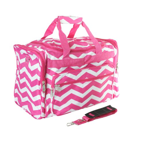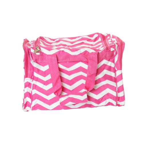 -. Title : 19" Pink & White Chevron Print Carry On Duffle Bag