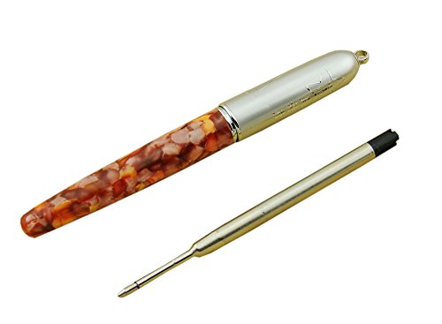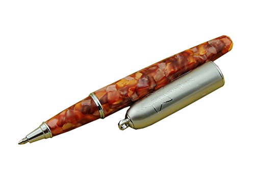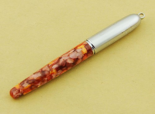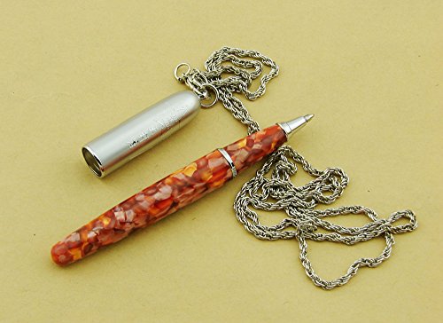 Lanxivi Orange Marble Celluloid Chain Rollerball Pen with Pen Pouch