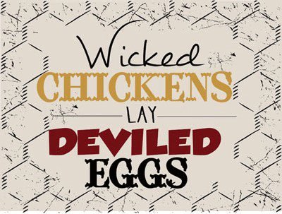 Wicked Chickens Lay Deviled Eggs Metal Sign, Rustic Country Cottage, Cafe Decor
