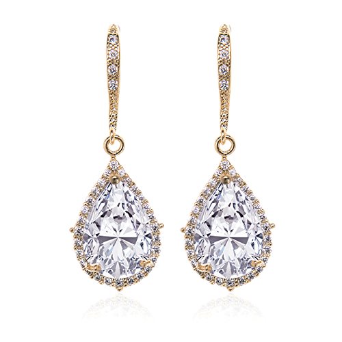 -. Title : Elegant Teardrop Cubic Zirconia Crystal Earrings in Silver, Gold, Rose Gold