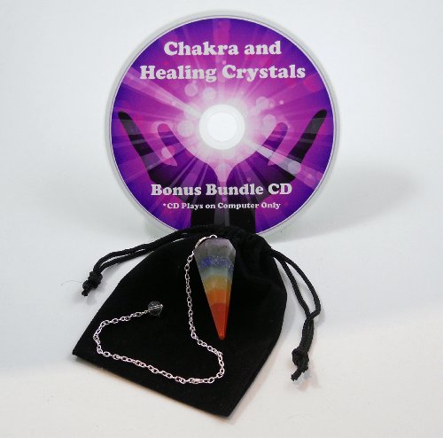 CHAKRA PENDULUM + POUCH + BONUS CD ~ 7 STONE STACKED & LAYERED FOR CRYSTAL HEALING DOWSING DIVINATION