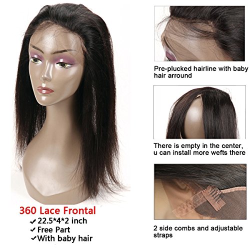 Studio : Gelaiya Hair Products Co., Ltd Publisher : Gelaiya Hair Products Co., Ltd Binding : Misc. Product Description The most popular frontal now! It reshapes ur hairline and gives ur natural hairline. 1.Subject matter : Human Hair ,100% Brazilian virgin hair!! 2.Colour Sort:Natural Colour ,can be dyed and bleach 3.Hair Weight : Hair bundles is 100gram,360 frontal is 80-150gram 4.Chemical processing: None 5.Type Quantity: Brazilian Virgin Hair Straight 360 Lace Frontal Closure with Bundles 6.Subject matter:Human Hair With Frontal Closure, Lace Frontal Closure With Bundles . 7.360Lace Frontal Bleached Knots with Baby Hair around. Feature : 1.Freestyle Parting : it can part in any direction as you like 2.Natural Hairline: it has natural hand tied hairline in the forehead and the back side of head also. It has natural baby hair and can put a high ponytail. 3. Package Contents:1 Piece 360 Closure and 2-3 Pieces weave 0