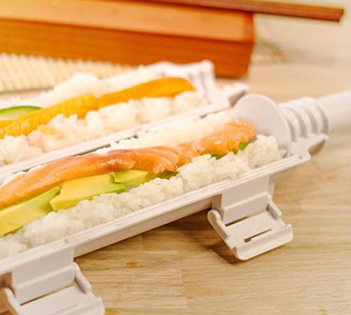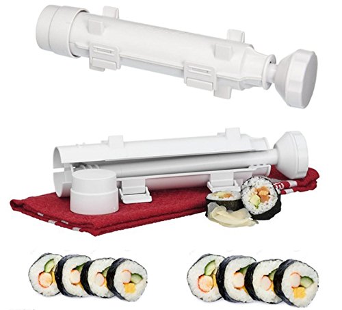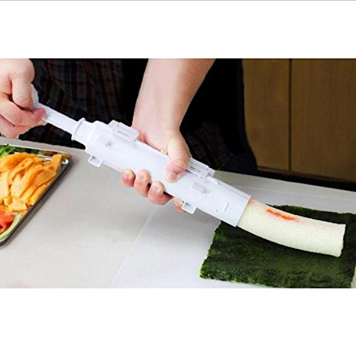 Studio : AT INNOVATION Publisher : AT INNOVATION Product Description EXCELLENT PRODUCT QUALITY - Our sushi roller made of high end food grade plastic to offer you health and fun sushi making experience GREAT SIZE TO USE - This sushi making measures only 12" X 2.5" X 2.5" with multipurpose using in your kitchen. UNIQUE DESIGN-This sushi bazooka is well know design to easier way of sushi making DISHWASH SAFE-It is easy to wash after you done your great journey of sushi making, just open and put in dishwasher. 0