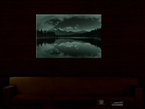 PICTURE SENSATIONS GLOW IN THE DARK CANVAS WALL ART, NATURE FOREST MOUNTAIN LAKE