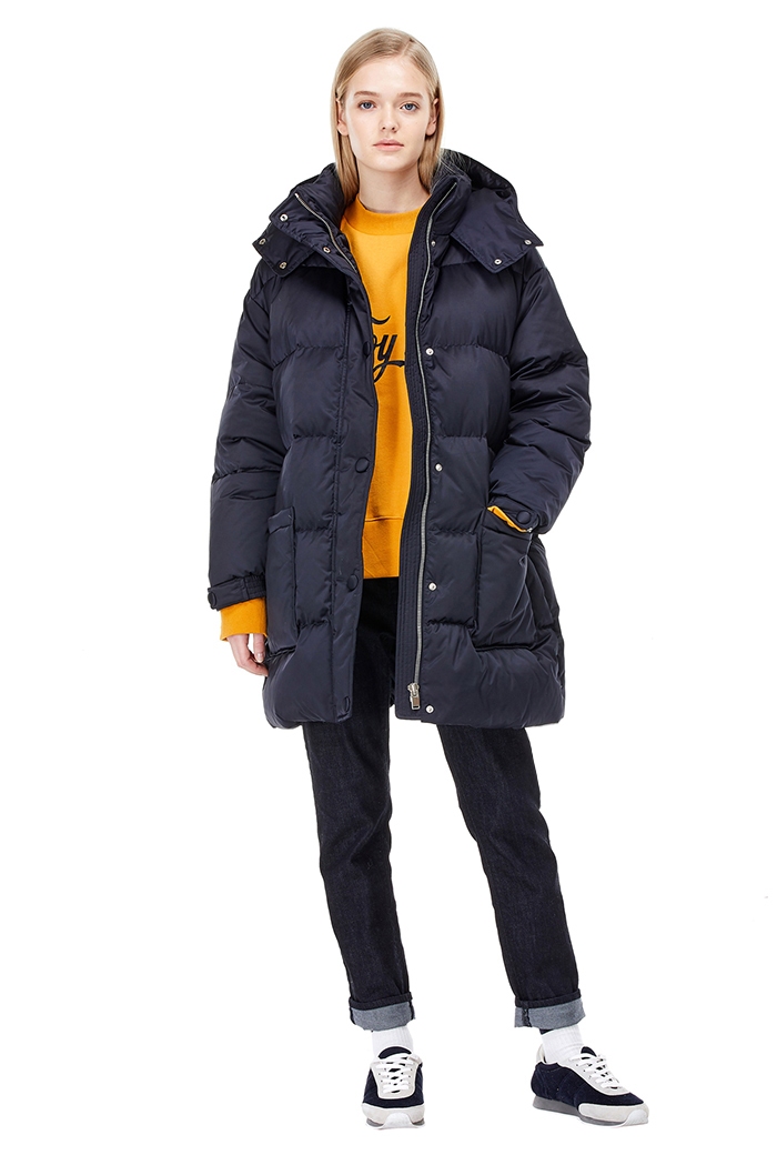 디자인 포인트:이중 클로징 디테일을 가진 캐주얼한 무드의 다운 점퍼벨티드 디테일로 다양한 연출이 가능한 디자인덕다운 소재로 우수한 보온성을 자랑하는 아이템