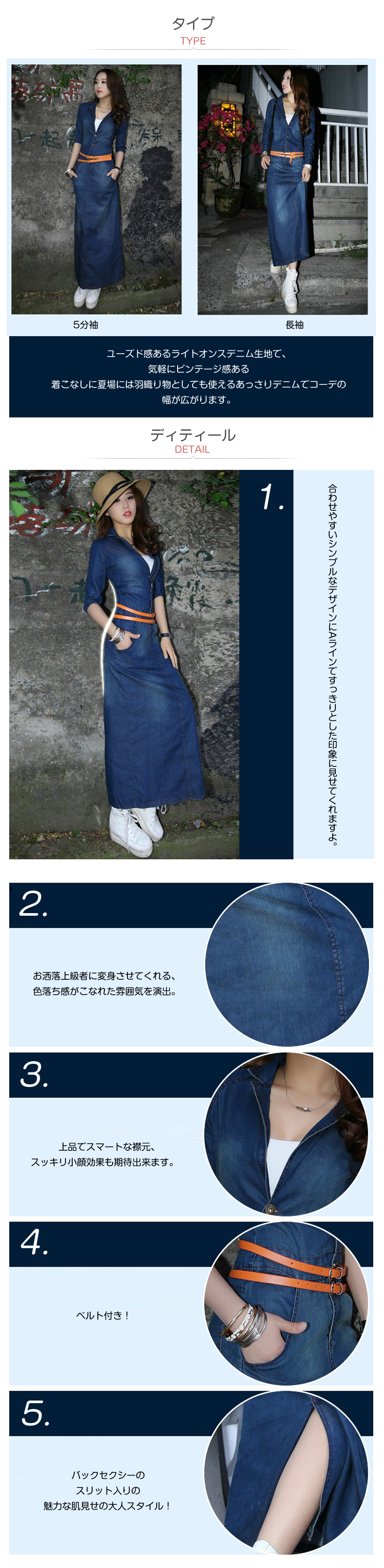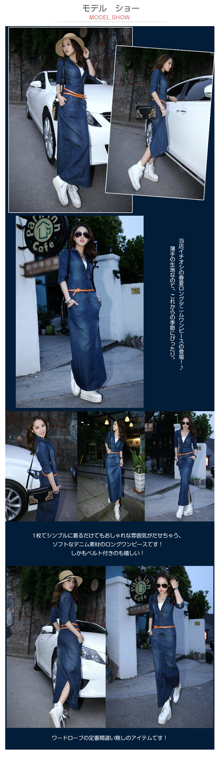 | 当店イチオシの春夏ロングデニムワンピースの登場!♪薄手の生地なので、これからの季節にぴったり。1枚でシンプルに着るだけでもおしゃれな雰囲気がだせちゃう、ソフトなデニム素材のロングワンピースです!しかもベルト付きのも嬉しい!ワードローブの定番間違い無しのアイテムです! | |
