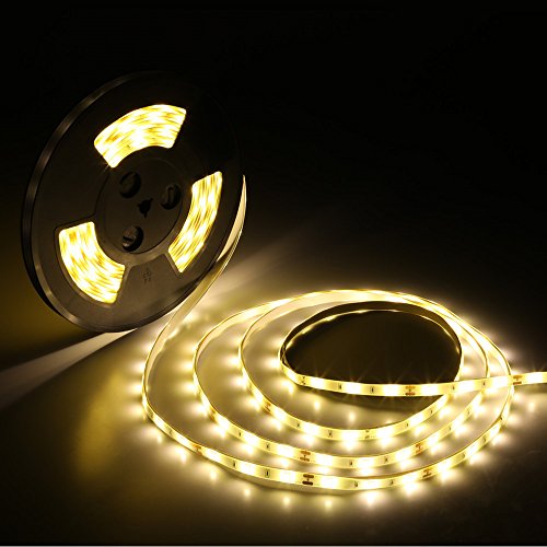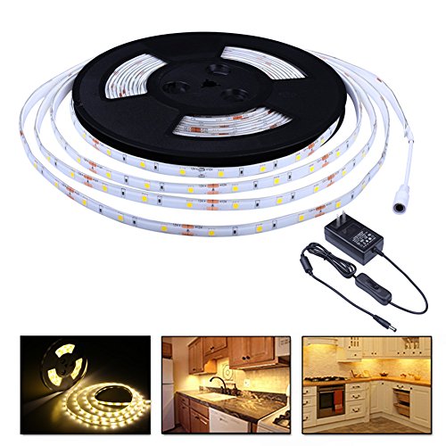 Miheal 32.8ft/10M Warm White Waterproof LED Strip Light, 3000K 12V 3A Flexible LED 5050 Lamp Tape DIY Full Kit for Home Indoor Decoration, Power Supply Included