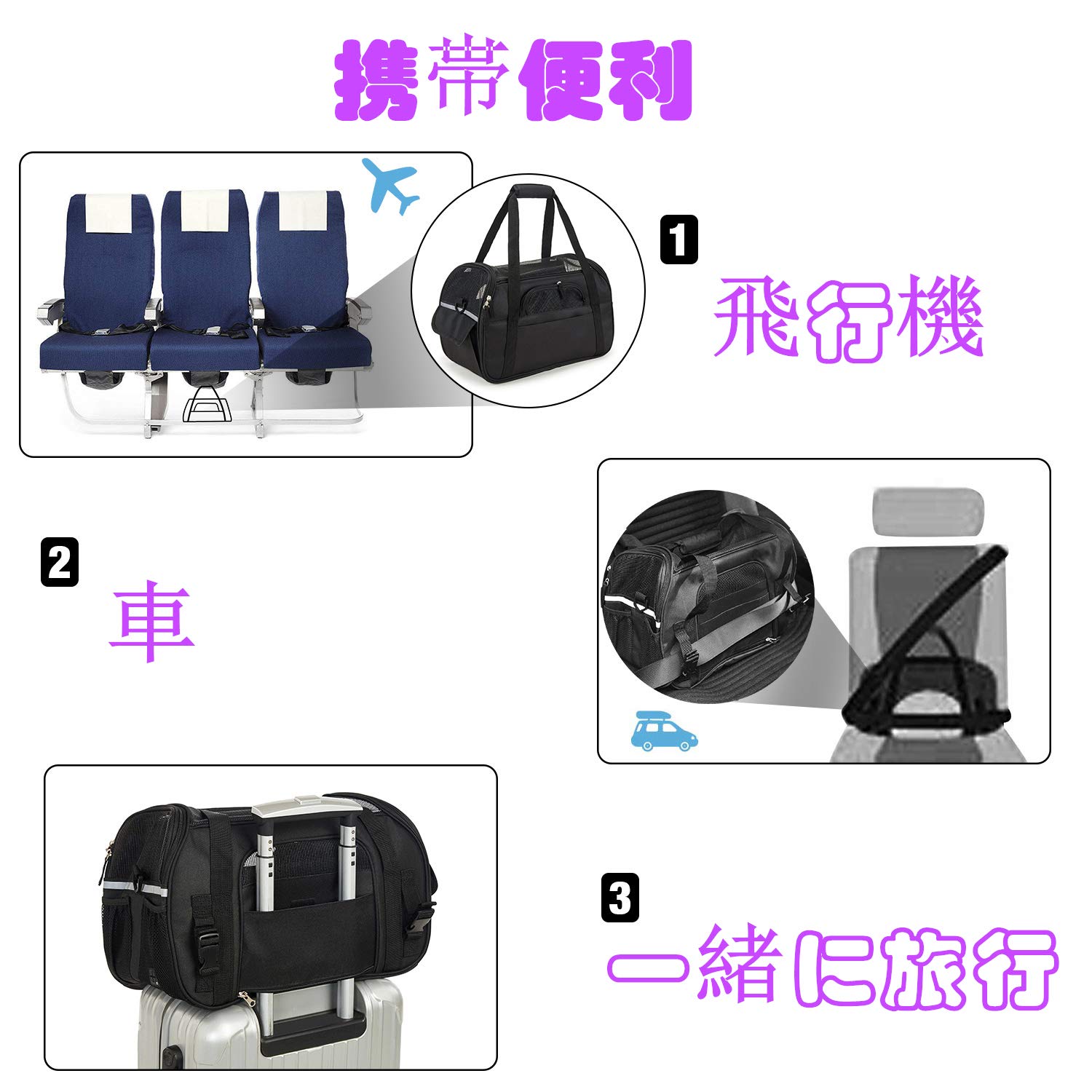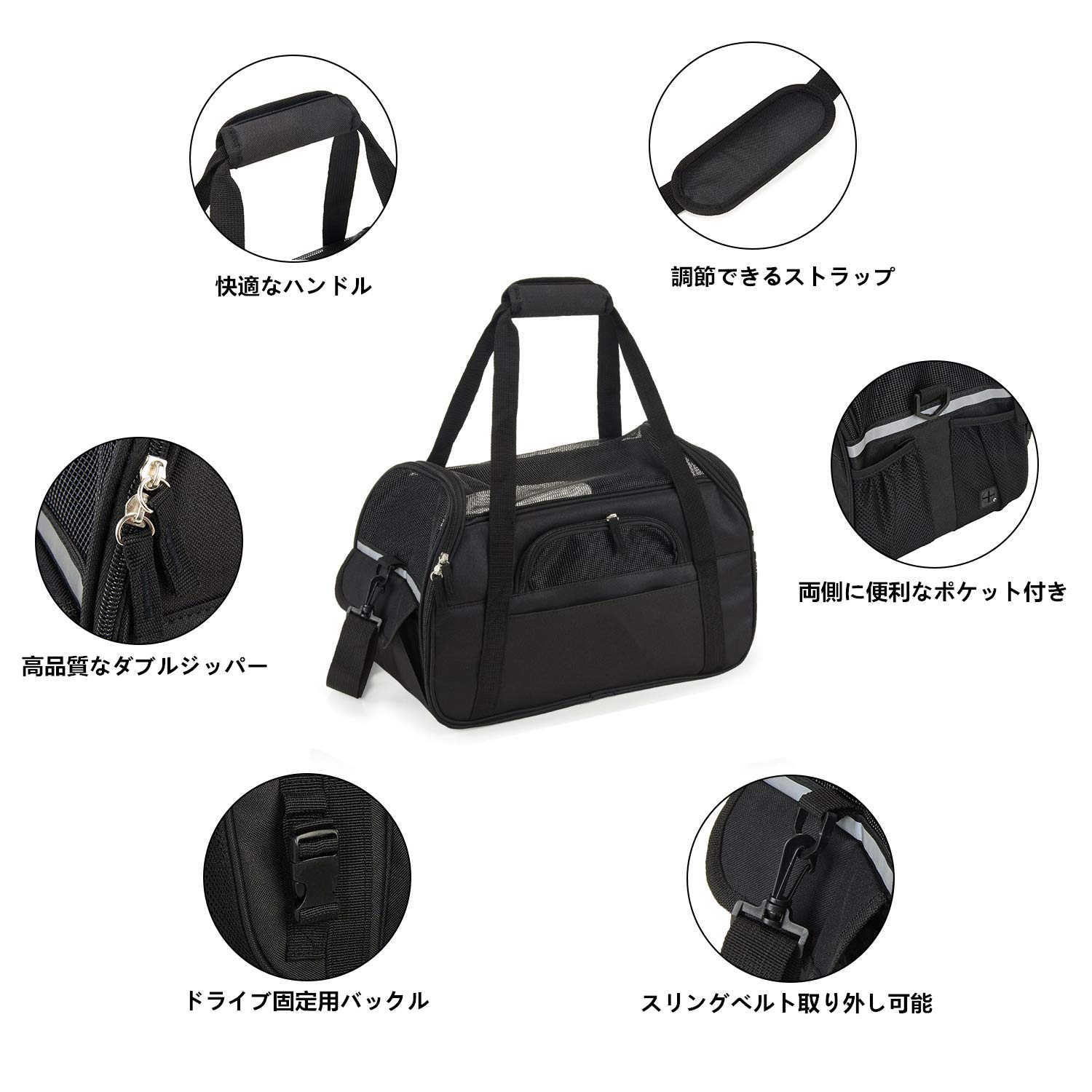 安全:600Dオックスフォード、丈夫な仕組み、中に飛び出しリード付きペットの安全を保障できます。 安心:大幅通気メッシュ加工、新鮮な空気を充分与えます。それにペットの様子も見えます。 便利:取り外すできる中敷付き、洗濯しやすい、折り畳める収納と携帯も便利です。 多機能:調節できるストラップと固定用バックル付き、ショルダー様式、ドライブにも使えます。