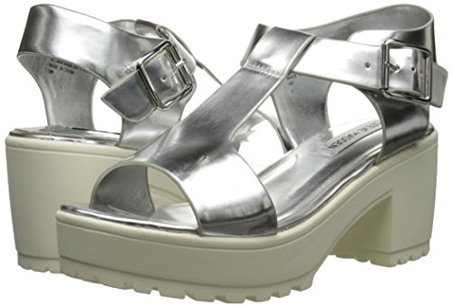 T-strap platform sandal featuring block heel and wide adjustable ankle strap with buckle