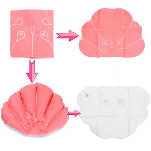 Inflatable Flower shaped Bath Pillow with Suction Cups. Recline in the ultimate comfort while bathing. Inflatable heavy duty- PVC bath pillows with terry cloth covering allow you to control and adjust the comfort level and is designed to contour to the shape of your head. Suction cups on back keep pillow from sliding and secure in place. Package Included: 3 x Inflatable Bath Pillow Color :White 0