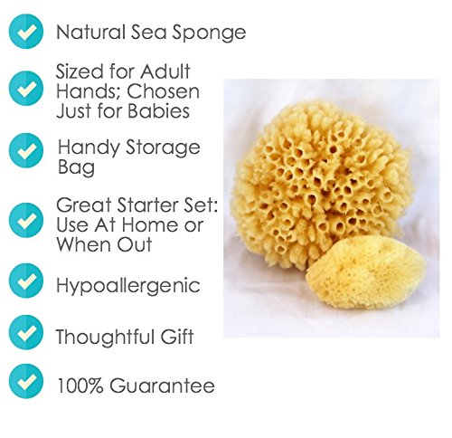 -. Feature : PERFECT SIZE FOR BABIES & NOT TOO SMALL FOR ADULT HANDS: Specially chosen so that they are large enough for adults to hold comfortably but still perfectly sized for babies. Highly practical with the larger sponge (4"-5") for general bathing and the mini sponge (1.5"-2") to clean the smaller more delicate areas. / SUPER GENTLE: Soft, hypo-allergenic, absorbent when fully saturated, these sponges produce a rich lather. A sponge that is too soft may require greater pressure to clean, while one that is too coarse may be uncomfortable on a baby's skin. Contented Infant's sponges strike a careful balance between softness with adE.q.u.a.t.e texture for a good all round wash. / 100% NATURAL & ECO-FRIENDLY: These are quality sea sponges with natural anti-bacterial and anti-fungal properties. Responsibly harvested from renewable resources. We respect the environment! / PRACTICAL TO USE: The sponges are provided in an attractive breathable drawstring bag which can be hung in a convenient place when the sponges have dried. You can also take these with you wherever you go: these sponges can be easily carried with other essential baby items and fit in most diaper bags. / A THOUGHTFUL GIFT: Beautifully packaged in a breathable drawstring storage bag, this is a perfectly practical and thoughtful new baby present or baby shower gift. We fully stand behind our motto of "Only the best will do"!