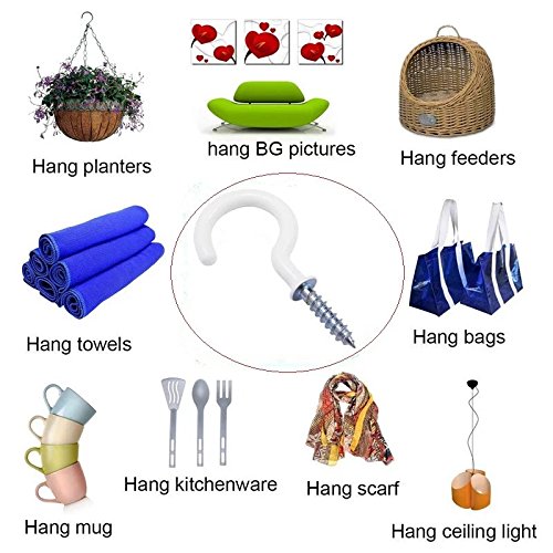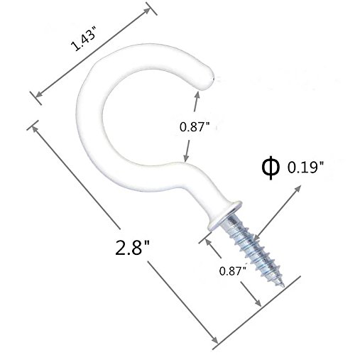 GARYOB 2 Inches Vinyl Coated Ceiling Hooks Cup Hook Holder White 10Pcs