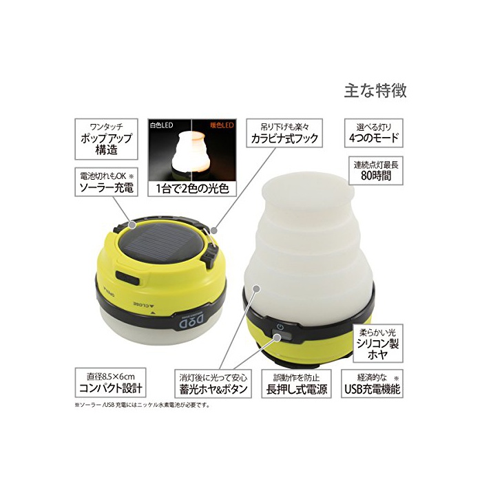 원본상품명: DOD(ディ?オ?ディ?) LED ソ?ラ? ポップアップ ランタン USB充電 [200ル?メン 連?点?80時間] L1-427