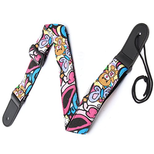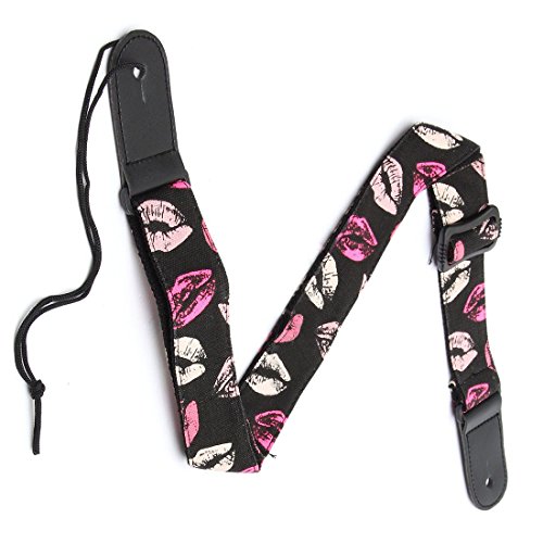 -. Title : Guitar Strap - TOOGOO(R)Washable No Fading Cartoon Style Adjustable Guitar Strap Denim Belt Leather Ends, Pink Lips
