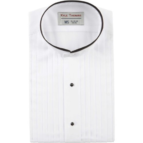 Kyle Thomas is one of the leading suppliers to the Formal and Career Apparel industries. This premium quality shirt is designed with a color fast satin edged collar. No need for a bowtie with this shirt. The collar button expands for comfort. The front is finished with 1/2 inch pleats for a modern look. The cuffs can be secured with the attached buttons or your own cuff links. The front placket can be secured with the attached buttons, enclosed plastic studs or your own personal jewelry. 0