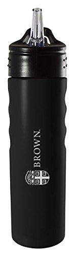 Brown University-24oz. Stainless Steel Grip Water Bottle with Straw-Black