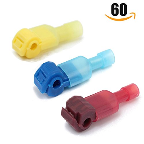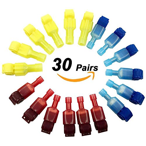 Bestgle Self-Stripping Electrical T-Tap Wire Spade Connectors of 60 Pcs/30 Pairs Quick Splice Terminals and Male Butt Terminal Crimp Kits (Yellow, Red and Blue)