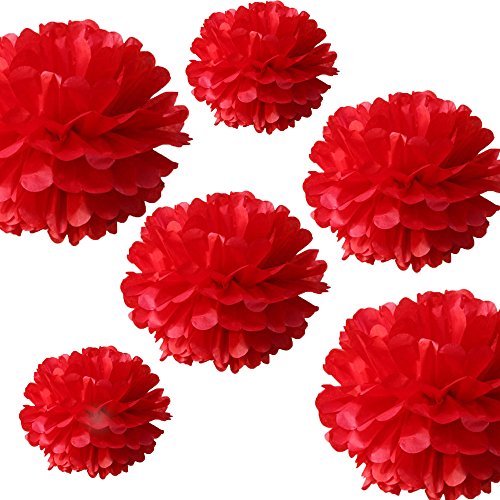 ()/Stationery Party Supplies/Party Supplies/DIRECT FROM USA/CheckMineOut 12Pcs Mixed 3Sizes Red Tissue Paper Pom Poms Decorative Flowers Wedding Centerpiec...
