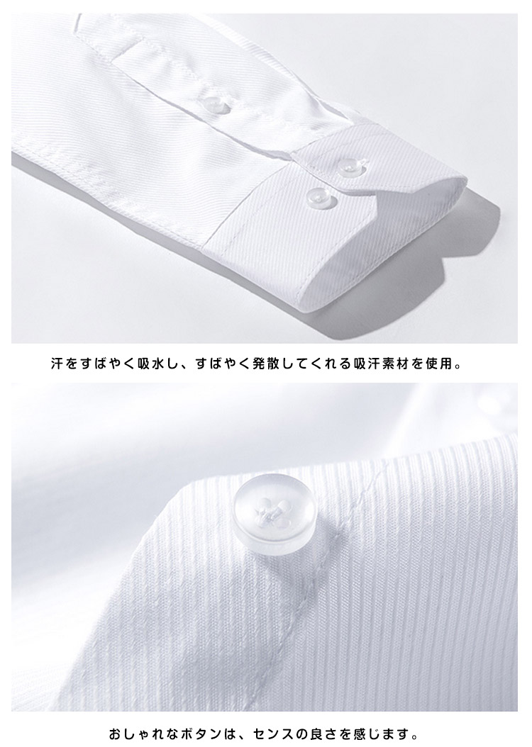 | 清潔感を保ちつつスタイリッシュさを演出し内勤や営業はもちろん、出張や会議のプレゼン、イベントやデートでもこなれ感のあるスタイリングも作りやすいお洒落なシャツです。 ONタイムからOFFタイムまで周りに差を付けるスタイリング力を発揮します。男を格上げするおしゃれなビジネスシャツ! | |