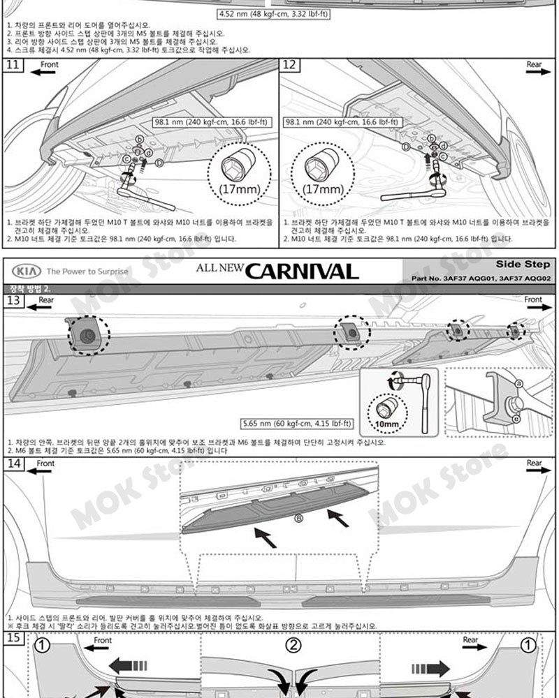 What is in the box ?- 1SET (2pcs : left+right)- Manual - Screw (4ea)- Bolt (ms10 Tbolt - 4ea/ ms bolt - 12ea/ m6 bolt - 8ea)- Nut (m10 nut - 4ea)- Washer (4ea)- Rivet Pin (14ea)- Bracket (8ea)