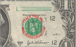 WHERES GEORGE? STAMP - Acrylic/Round (Seal Hugger) - Acrylic WG Stamp With Round Design And Classic Style Lettering // Stamp Lets Bill Handlers Know How To TRACK THIS BILL