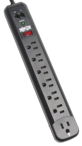 Tripp Lite's TLP76MSG offers reliable, GREEN surge technology that protects your computer and peripherals as well as the environment and your wallet. Energy-saving outlet configuration reduces energy waste (phantom loads) by cutting AC power to unused peripherals. The TLP76MSG has one always on outlet for those peripherals that need constant power like a fax machine, DVR or router. It also offer convenient, individual outlet switches that allow users to select which device is turned on and off. The TLP76MSG has 7 total outlets, 6 foot cord and diagnostic LEDs to warn of wiring problems and suppressor damage. Network-grade AC suppression rated at 1080 joules shields equipment from surges and line noise. Designed with an attractive cool gray suppressor housing, the TLP76MSG can accommodate up to 4 transformer plug outlets offering convenient protection of desktop computer equipment and accessories. Lifetime warranty with $25,000 connected equipment insurance (USA & Canada only).