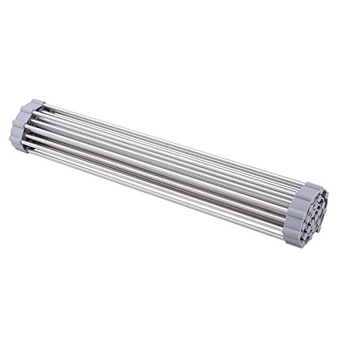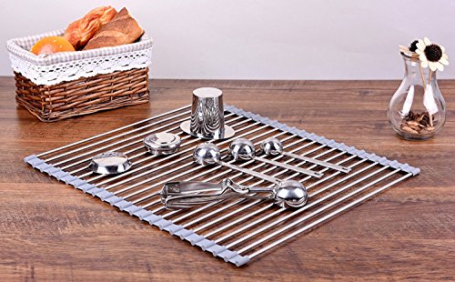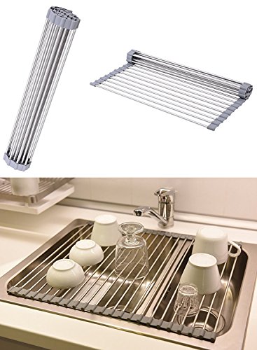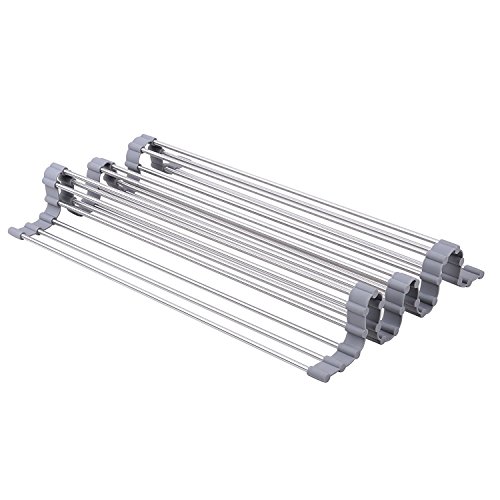 Kingnice Over the Sink Multipurpose Stainless Stee Roll-Up Dish Pot Drying Rack, 16.1"(L) x 18.5"(W), Grey