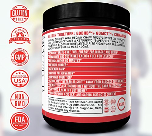 -. Feature : Carbohydrate-free fuel energy for muscle and brain / Immediate and sustained energy fuel for exercise / Ketosis within 60 Minutes. Exogenous Ketones from MCT powder and BHB Salt