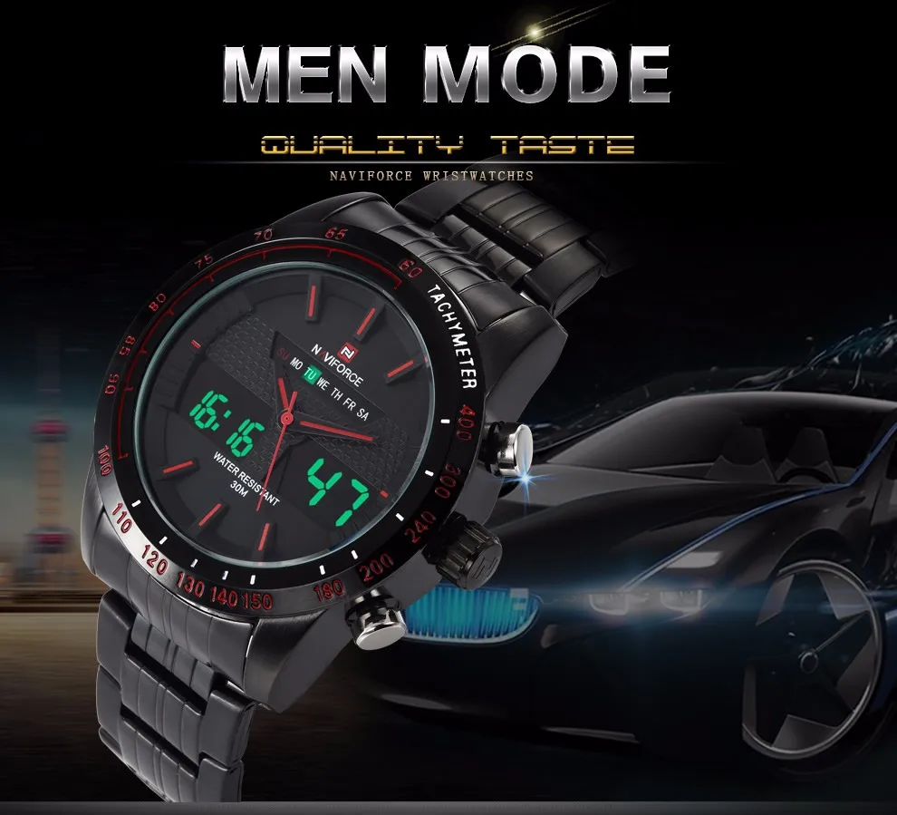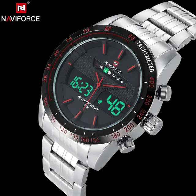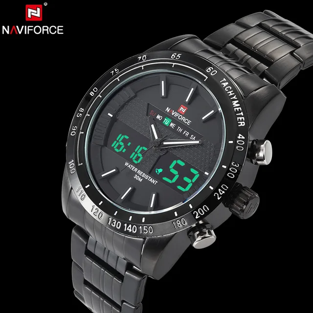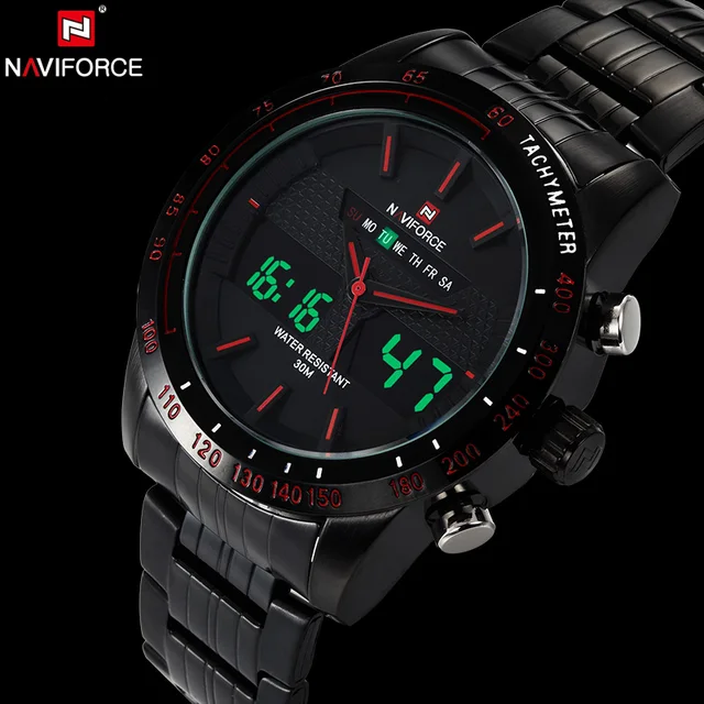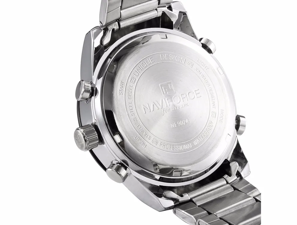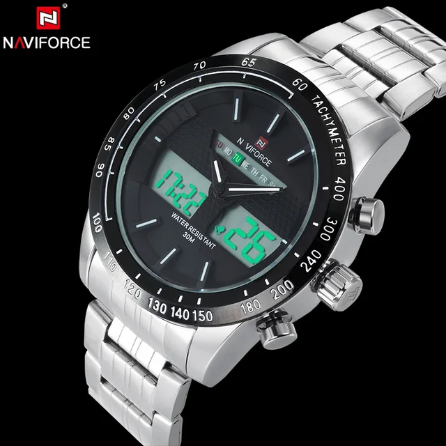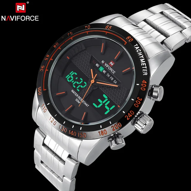 | [해외] NAVIFORCE 원래 럭셔리 브랜드 스테인레스 스틸 쿼츠 시계 남성 디지털 시계 군사 스포츠 시계 relogio masculino |