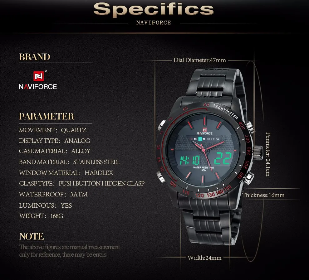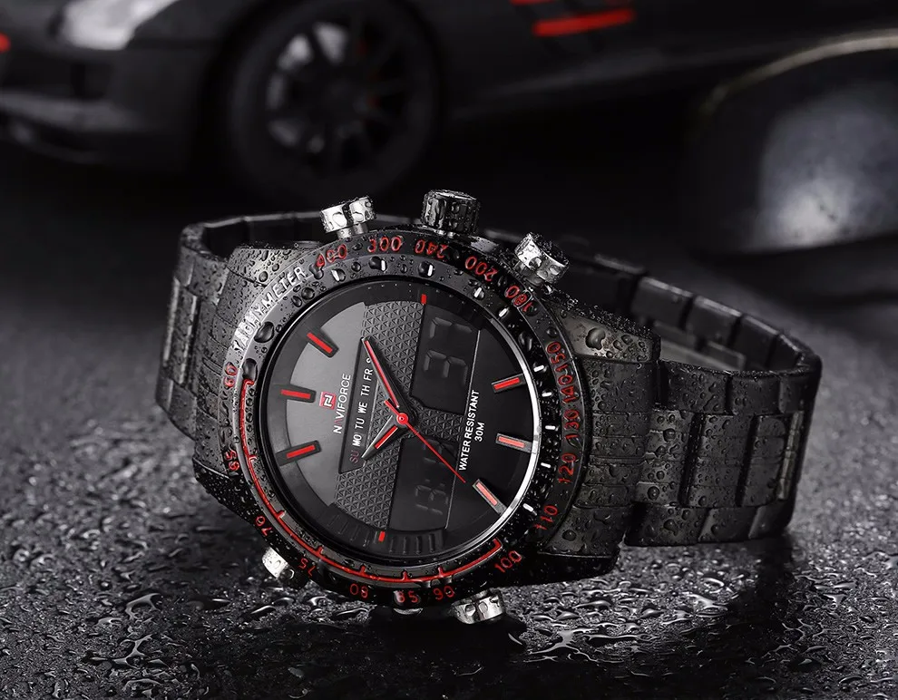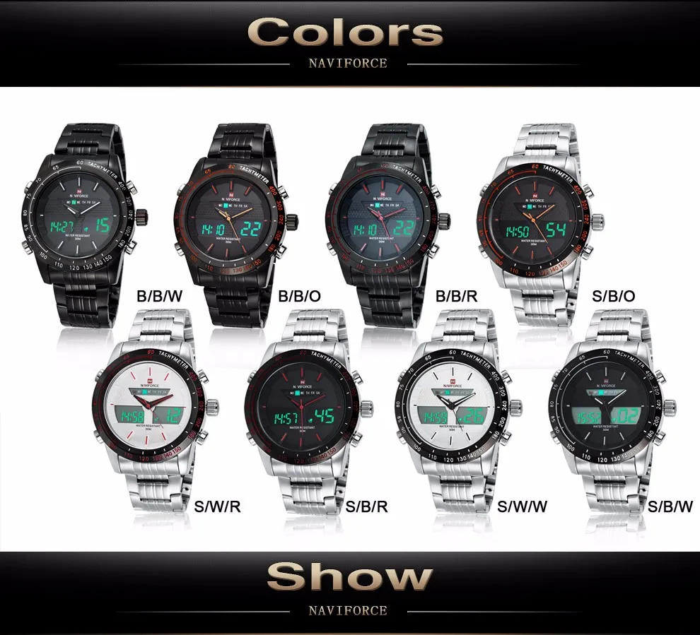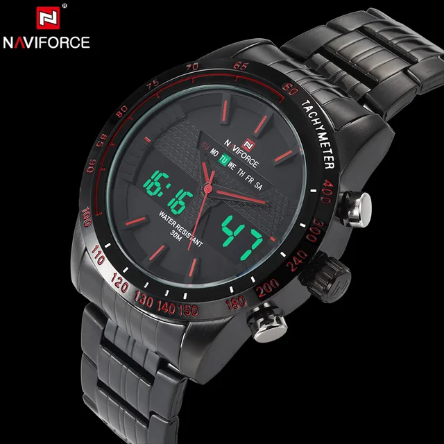 | [해외] NAVIFORCE 원래 럭셔리 브랜드 스테인레스 스틸 쿼츠 시계 남성 디지털 시계 군사 스포츠 시계 relogio masculino |