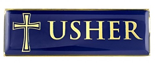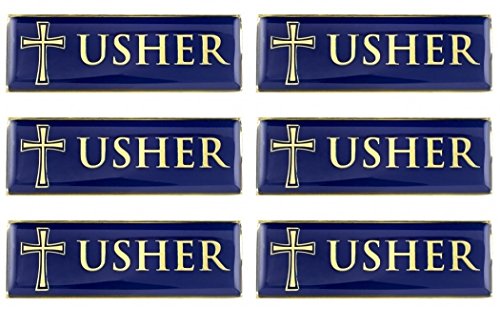 Gold Tone and Blue Enamel Metal Magnetic Badge for Church Volunteer or Elder, 3 Inch (Pack of 6, Usher)