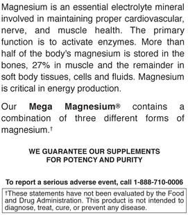 -. Binding : Health and Beauty -. Brand : Natural Nutraceuticals -. Feature : NATURAL - Our Mega Magnesium supplement provides 100% of your recommended daily value of magnesium. Each of our 90, 400 mg capsules are Vegan, Vegetarian, and Gluten Free; and contain an optimal ratio of Citrate, Malate, and Chelate, which promote muscle, nerve, and bone health. / UNIQUE - Don't sacrifice quality for cheap plastic bottles. Our supplements are sealed in environmentally friendly amber glass bottles with heat-sealed sleeves and best by dates to ensure the safest and purest product available. / TRANSPARENT - Our USA based, green manufacturing facility is FDA inspected, GMP Certified and NPA Awarded. We guarantee potency and purity through scientifically backed formulas and premium ingredients. / RELIABLE - We have over a 99 percent positive feedback rating for a reason. Our outstanding customer service team respects your time and appreciates your business. Once you become a Natural Nutra customer you become part of a family. / ASSURANCE - Every supplement comes with a no questions asked, 30 day money back guarantee and free shipping on orders of $49 or more. Click the 'Add to Cart' button now to experience a premium Magnesium supplement, and consider ordering one for a friend or loved one! -. IsAdultProduct : 0 -. Label : Natural Nutraceuticals -. LegalDisclaimer : These statements have not been evaluated by the food and drug administration. This product is not intended to diagnose, treat, cure, or prevent any disease. -. Manufacturer : Natural Nutraceuticals -. MPN : 0610009000 -. PackageQuantity : 1 -. PartNumber : 0610009000 -. ProductGroup : Health and Beauty -. ProductTypeName : HEALTH_PERSONAL_CARE -. Publisher : Natural Nutraceuticals -. Studio : Natural Nutraceuticals -. Title : Natural Nutra Mega Magnesium Supplement with Citrate, Malate, Chelate, and Malic Acid, 400 mg, 90 Capsules