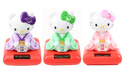 -. Binding : Toy -. Brand : We pay your sales tax -. EAN : 4861653173420 -. Feature : Size: 4" (H) X 2.75" (L) Color: Green & Purple & Pink Material: Plastic Individually packed in a see-through packaging. / Great gift or decorative statue to put in office, front door, living room!! / Eco-friendly. Batteries are not needed. Hassle-free. Head nodding when light is directed at the solar strip. -. IsAdultProduct : 0 -. Label : Wepayyoursalestax -. Manufacturer : Wepayyoursalestax -. MPN : 9091470 -. PackageQuantity : 1 -. PartNumber : 9091470 -. ProductGroup : Toy -. ProductTypeName : TOYS_AND_GAMES -. Publisher : Wepayyoursalestax -. Studio : Wepayyoursalestax -. Title : Set of 3 Cute Hello Kitty in Green & Purple & Pink Kimono Holding Lucky Ema Solar Toy Home Decor Gift by We pay your sales tax