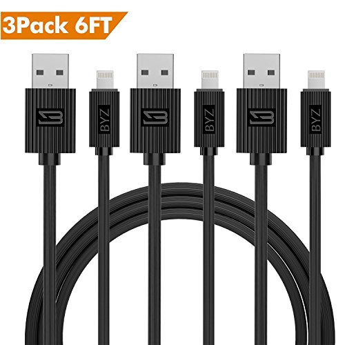 -. Title : BYZ iPhone Charger Lightning Cable [3 pack] - 6 ft USB Cable Sync & Charging Cord for iPhone 7 Plus 7 6S Plus 6 Plus SE 5S 5C 5, iPad 2 3 4 Mini, iPad Pro Air, iPod - Black