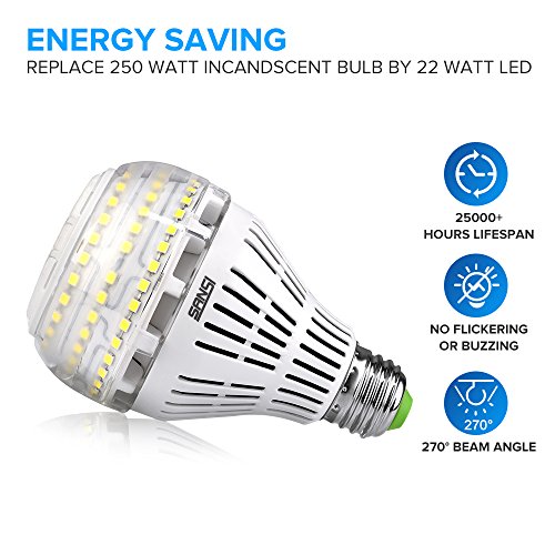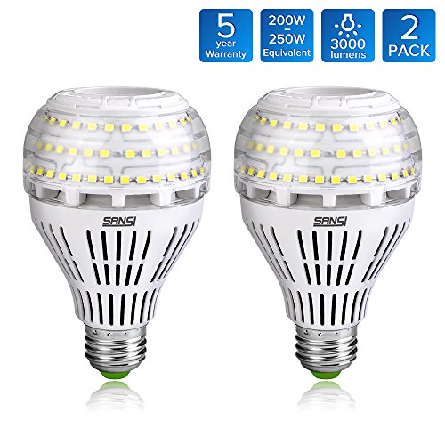 SANSI A21 22W (250-200Watt Equivalent)Omni-directional Ceramic LED Light Bulbs–3000 lumens, 5000K Daylight, CRI 80+, E26 Medium Screw Base Home Lighting (2Pack)