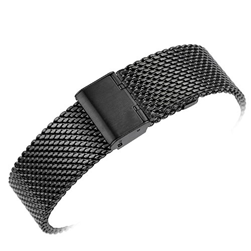 -. Title : YISUYA 22mm Solid Milanese Mesh Stainless Steel Strap with Hook Buckle Classic Black Watch Band Straps 2.2cm