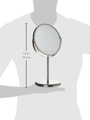 Product dimensionsDiameter: 6 3/4 'Height: 13 'Good to knowOne side of the mirror magnifies 2.5 times.Do not expose to direct sunlight. The sunbeams may reflect in the mirror glass and ignite flammable material.Care instructionsWipe clean with a damp cloth. Use only water or window-cleaner.Wipe dry with a clean cloth.Product descriptionMain parts: Stainless steelMirror glass: GlassThis item requires basic assembly