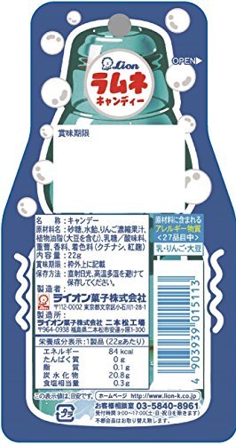 原材料:砂糖、水飴、りんご濃縮果汁、植物油脂(大豆を含む)、乳糖/酸味料、重曹、香料、着色料(クチナシ、紅麹)