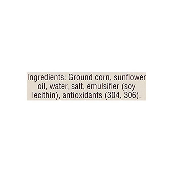 원재료:옥수수(유전자 조작이 아니다)고, 식물성 기름지,식염,산화 방지제(V.E:대두 유래,V.C)