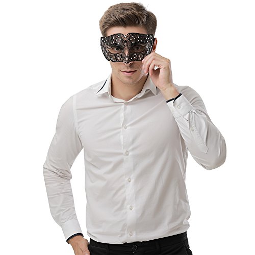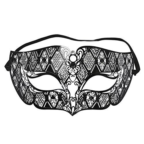ANGAZURE Masquerade Mask for Women Laser Cut Black Metal Venetian Mask (Style 2)