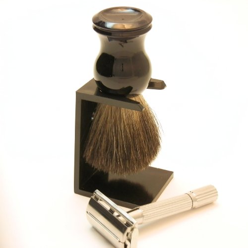 100% Authentic Mixed Black Badger Hair Shaving Brush by Premier Rasage