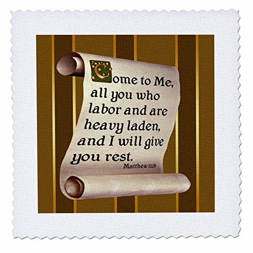 3dRose Matthew 11 Verse 28 on a Scroll with Illuminated and Medieval Text Quilt Square, 8 x 8"