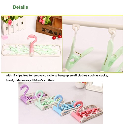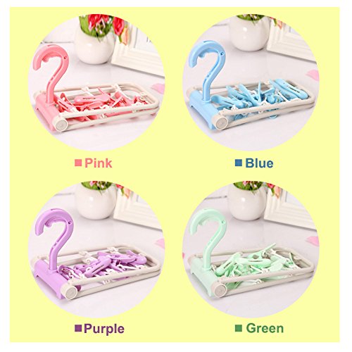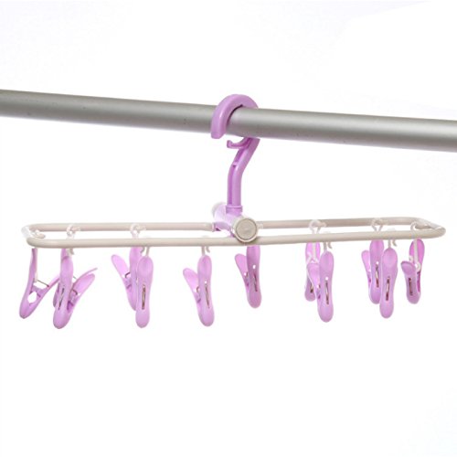 Clip Hanger Space Saver Clip & Drip Socks Hangers with 12 Clips Drying Rack with Clips (Purple)