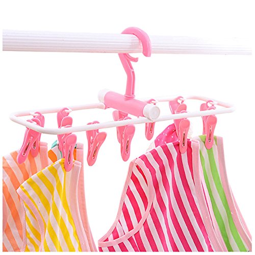 - 3.Drying rack hanging with 12 clips,free to remove,suitable to hang up small clothes such as socks,towel,underwears,children's clothes
