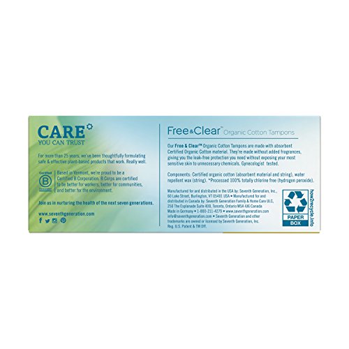 Seventh Generation Organic Cotton Tampons, Regular Absorbency Non-Applicator, 20 count (Pack of 12)