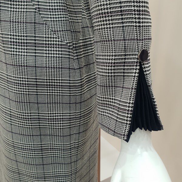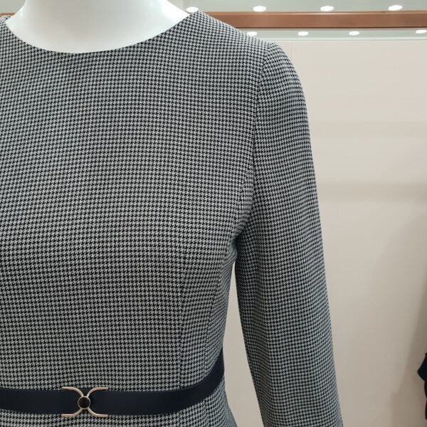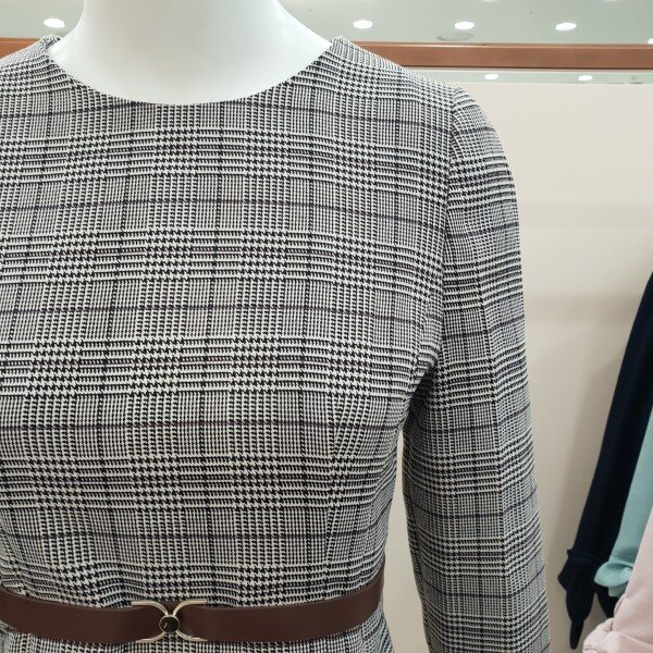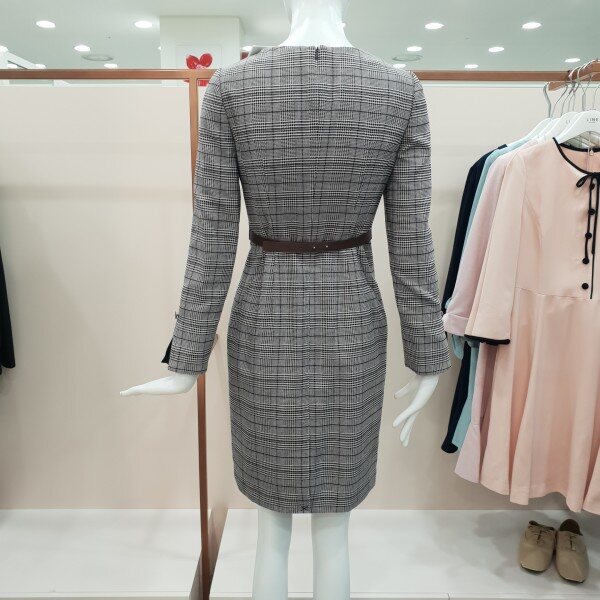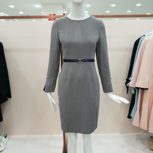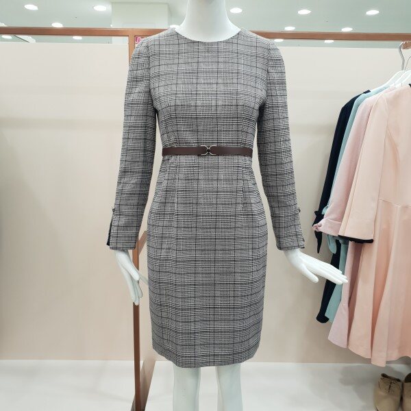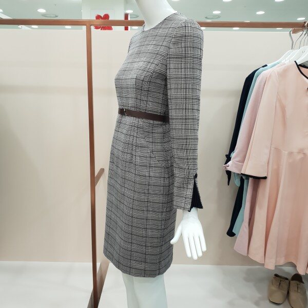 단아하고 깔끔한 슬림H라인 벨트원피스소매 플리츠원단 배색포인트그레이체크,블랙체크 컬러구성